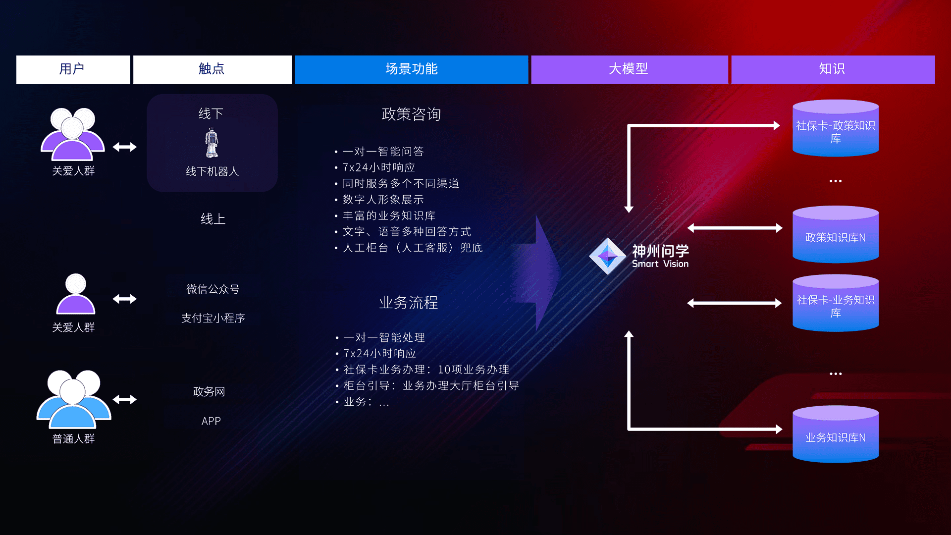 • 线上线下全覆盖:线上提供微信公众号、、、支付宝小程序、、、政务网、、、、app多种渠道,,与线下机器人形成完整服务体系。。